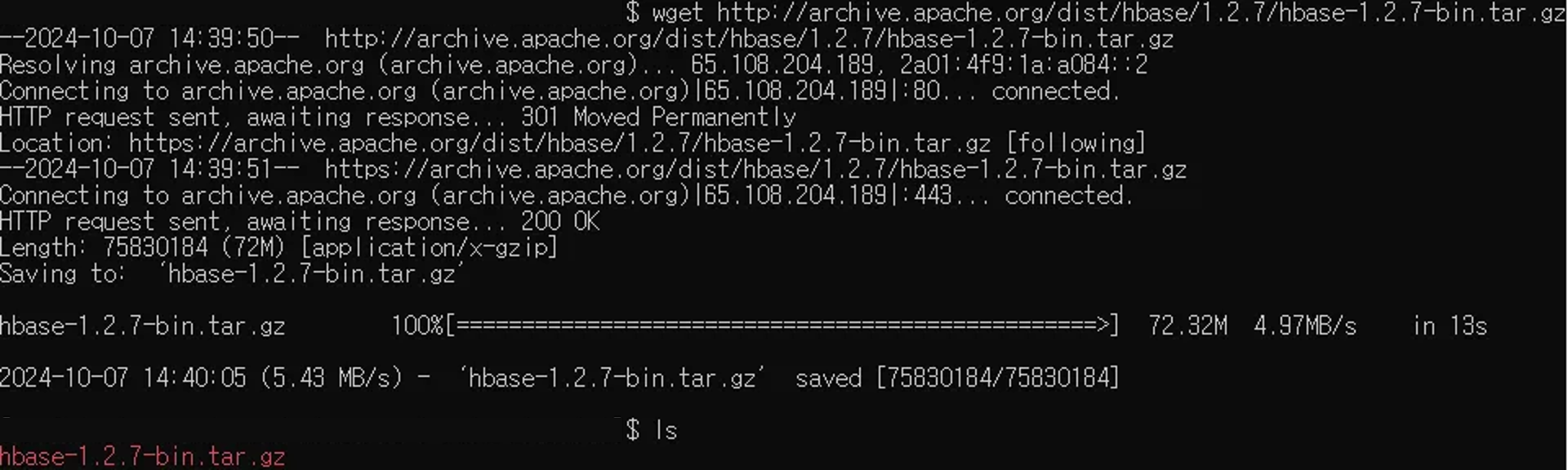 wget http://archive.apache.org/dist/hbase/1.2.7/hbase-1.2.7-bin.tar.gz