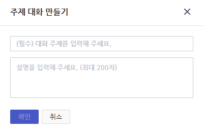 주제 대화 만들기를 클릭하면 대화 주제, 설명을 적는 창이 뜬다. 각자 원하는 주제 및 설명을 작성하면 된다.